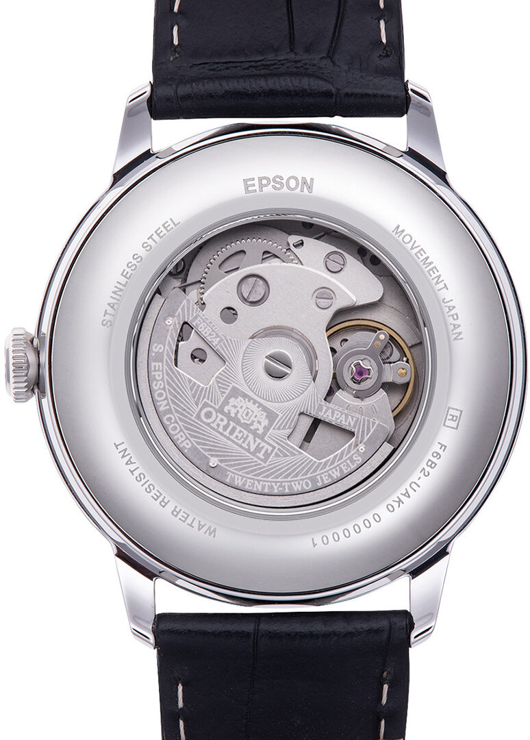 Mecánico de cuerda automática. Orient F6B24, Reserva de marcha 40h, 21.600 BPH (3Hz), 22 piedras, Hackear, Posibilidad de cuerda manual, Reloj de cuerda reversible