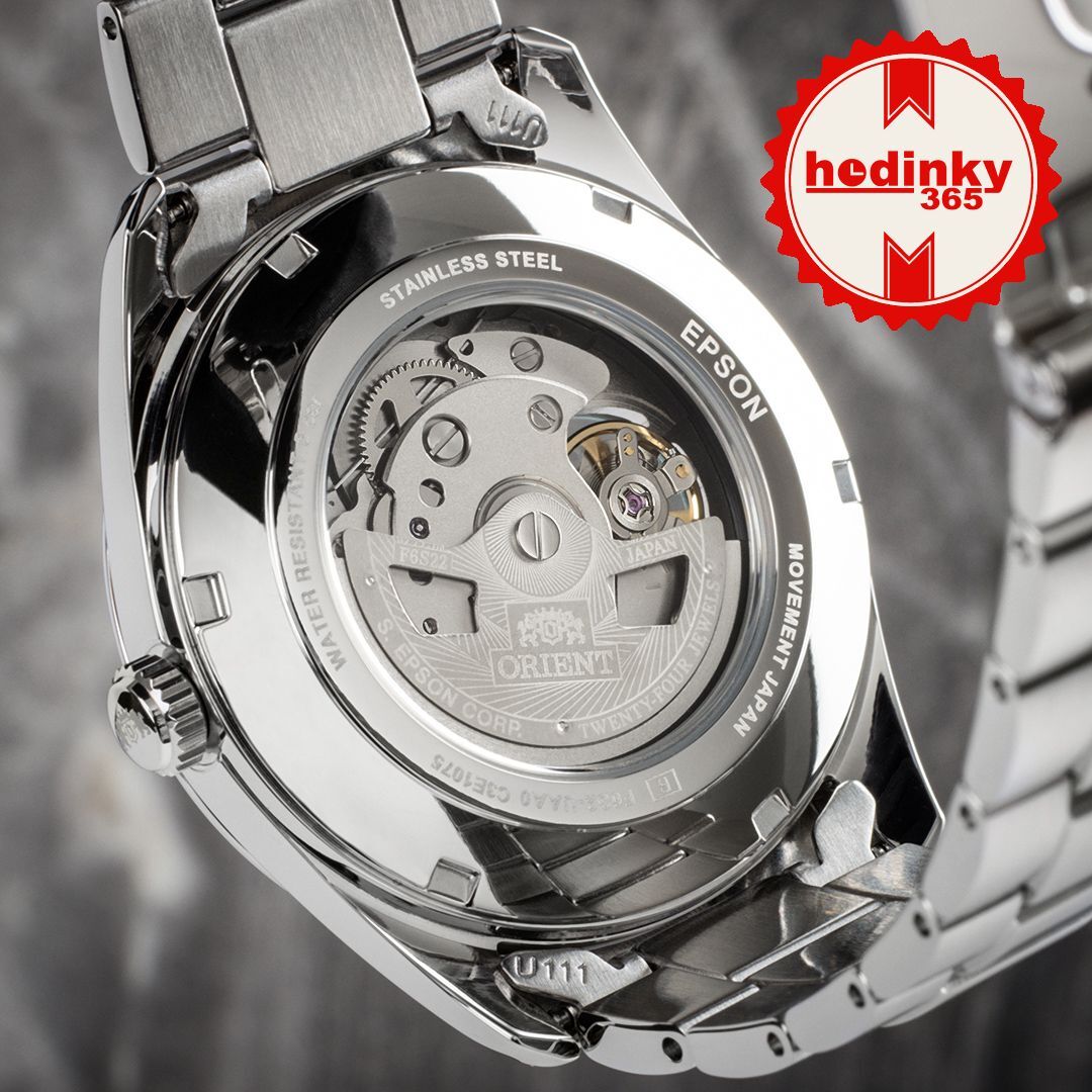 Mecánico de cuerda automática. Orient F6S22, Reserva de marcha 40h, 21.600 BPH (3Hz), 24 piedras