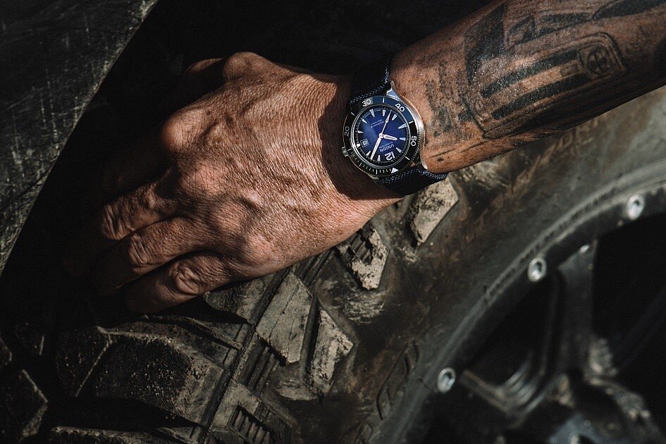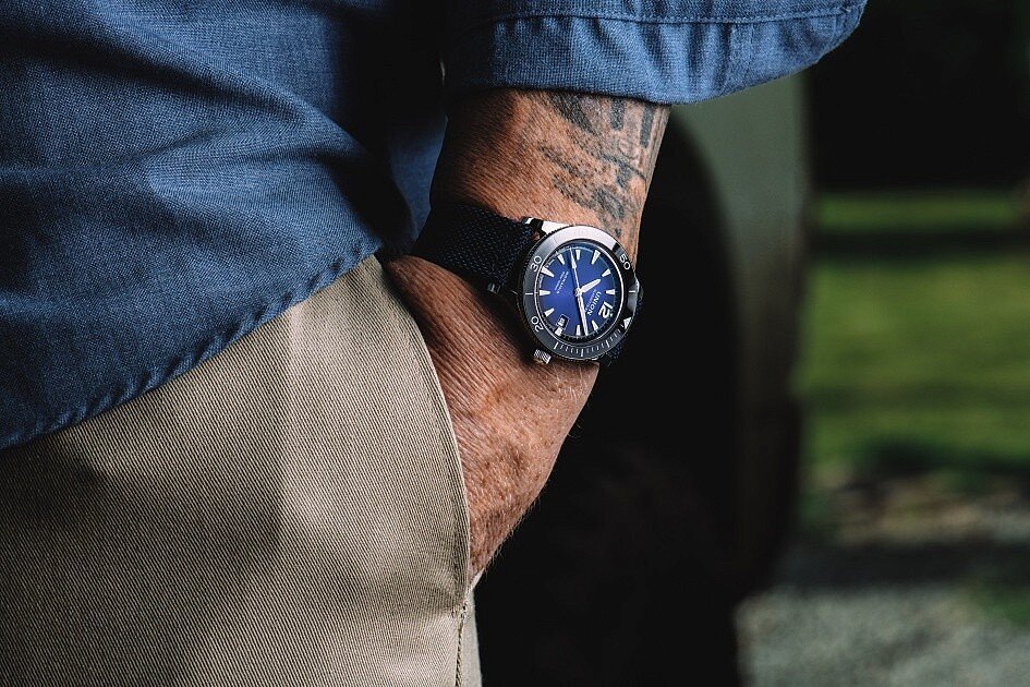 Hombres reloj - textil correa, de acero caja, de zafiro vidrio. Todos los datos técnicos. los parámetros se encuentran más abajo